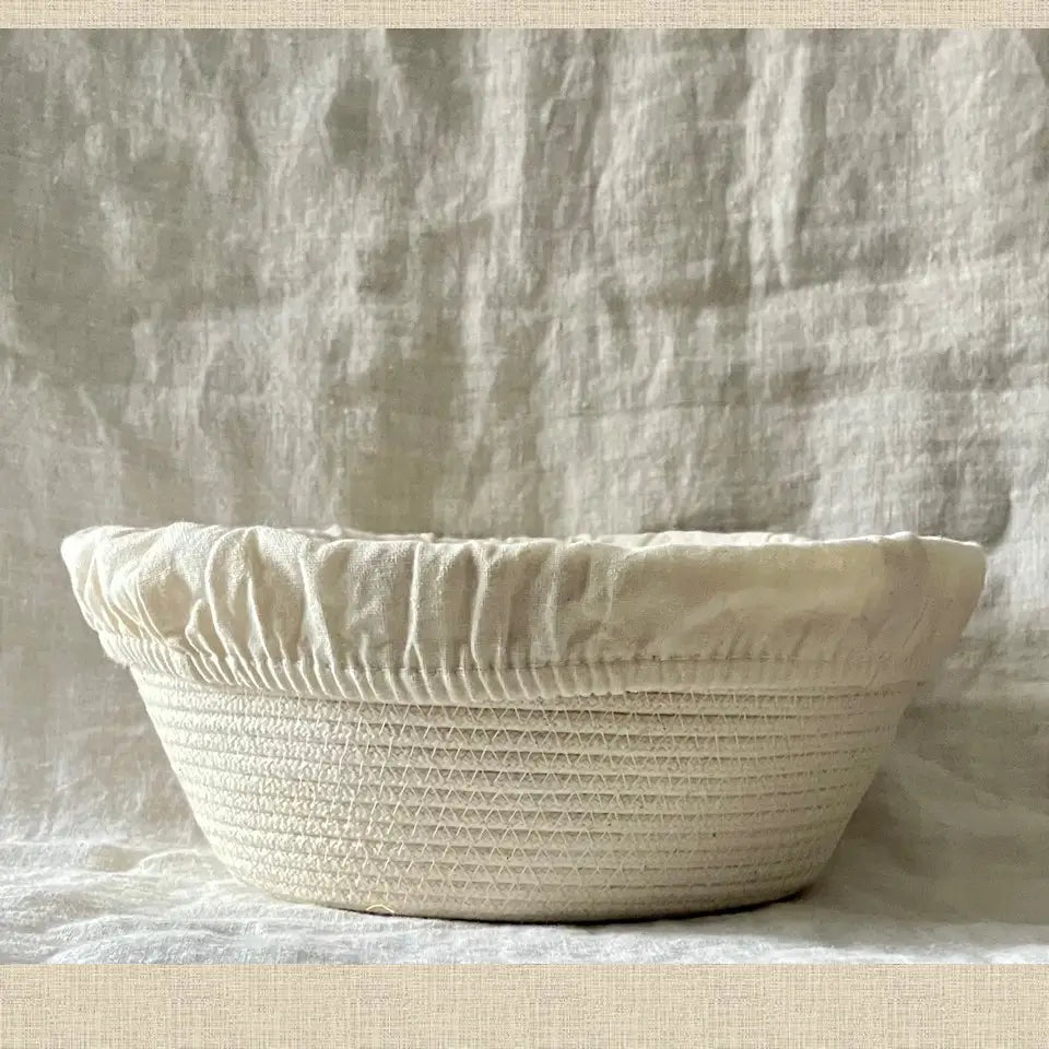 The perfect gift for artisan bakers, this dough proofing rope bowl is sewn, non-toxic and made with 100% cotton rope. Made to hold the shape of your dough, each bowl comes with an untreated linen and cotton fabric liner. Sprinkling some flour on the cloth liner will ensure that the dough avoids sticking and is easily inverted after fermentation. Avoid funny odors and splinters with this baking accessory. Each piece is unique in shape and design. Spot cleaning is recommended since the rope may shrink if placed in hot water. Hard stains may be removed with a small amount of baking soda and warm water. Cotton fabric liner may be hand washed.