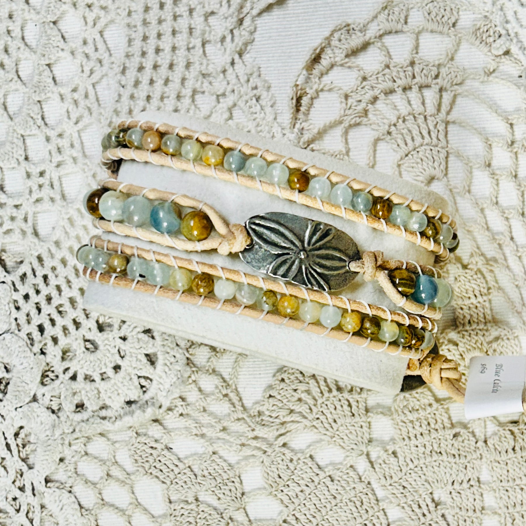Each Bracelet is made of  quality, carefully sourced materials including but not limited to: leather, nylon and other durable stringing materials,  gemstone beads (each stone type carries different energetic properties to promote and facilitate healing- chances are you are usually drawn subconsciously  to something that will assist you in the current moment), stainless steel or other metals such as tibetan silver, miyuki delica beads or other components.
