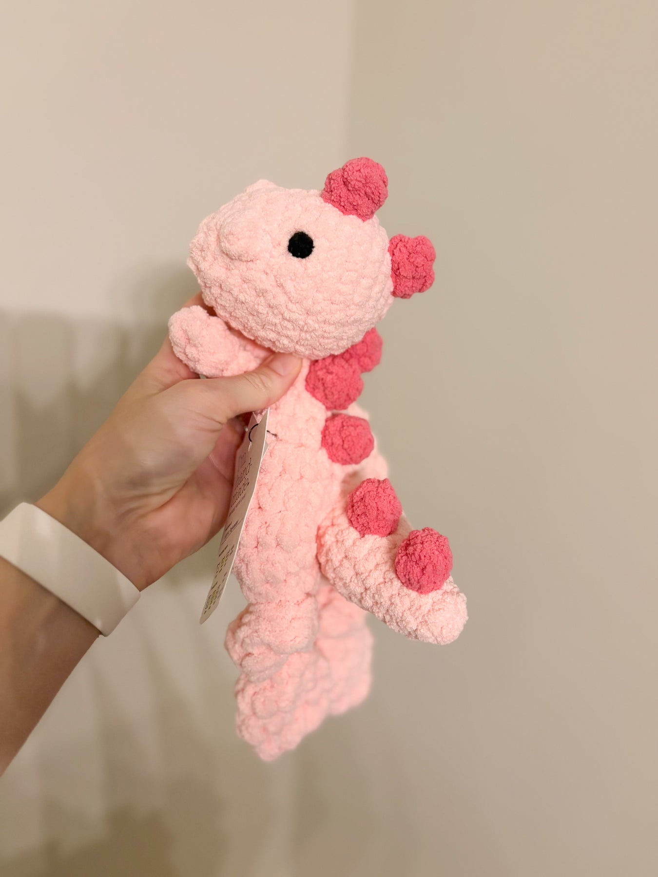 This adorable minisaurus is a combination of a plushie, with a stuffed head, and blanket, with a soft and squishy body. It is perfect for little hands. It is made with a soft, machine-