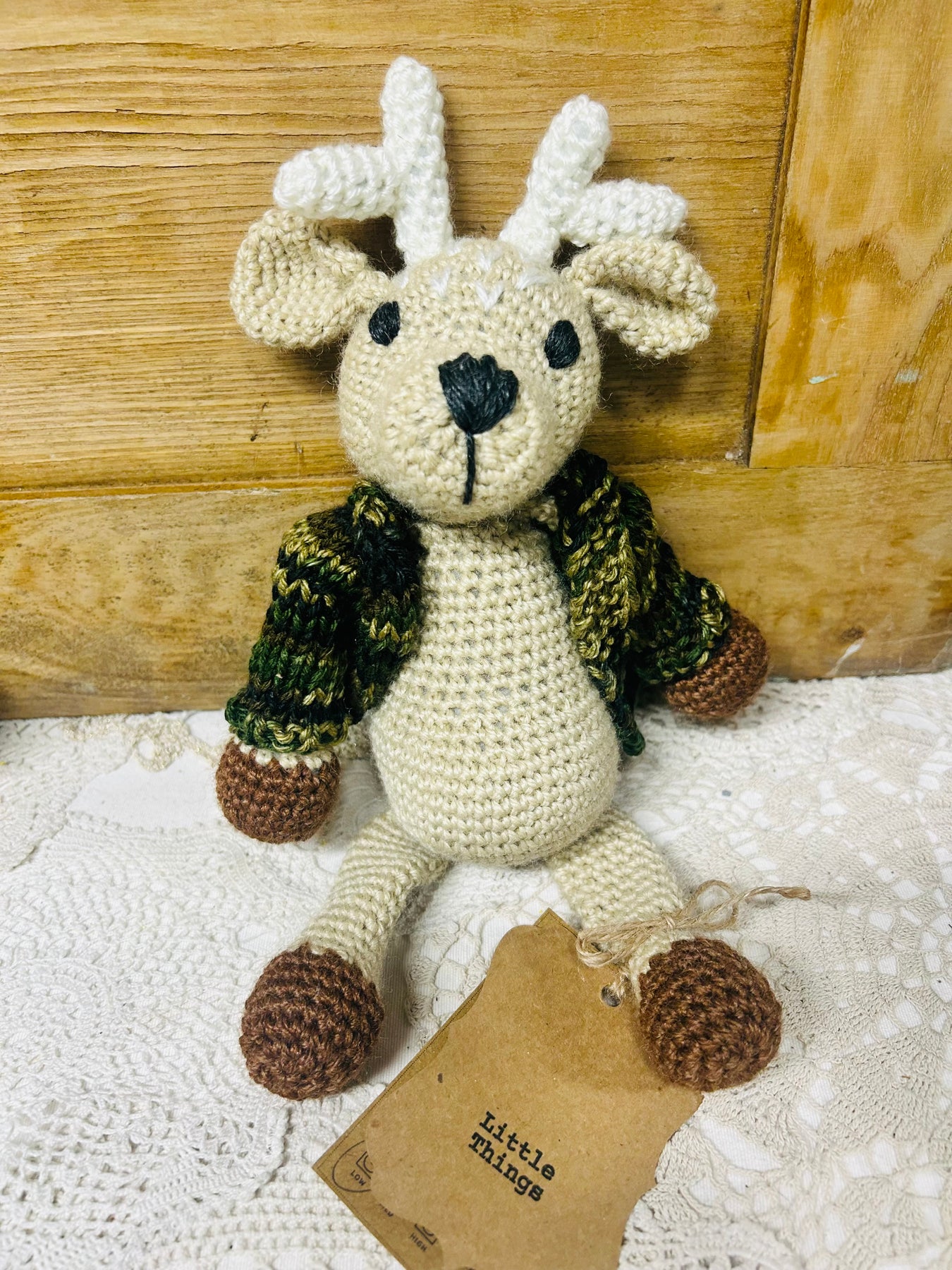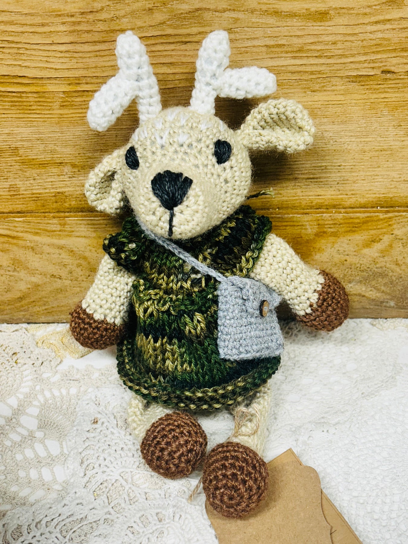 Reminiscent of the handmade toys of yesteryear with a sweet little sweater.