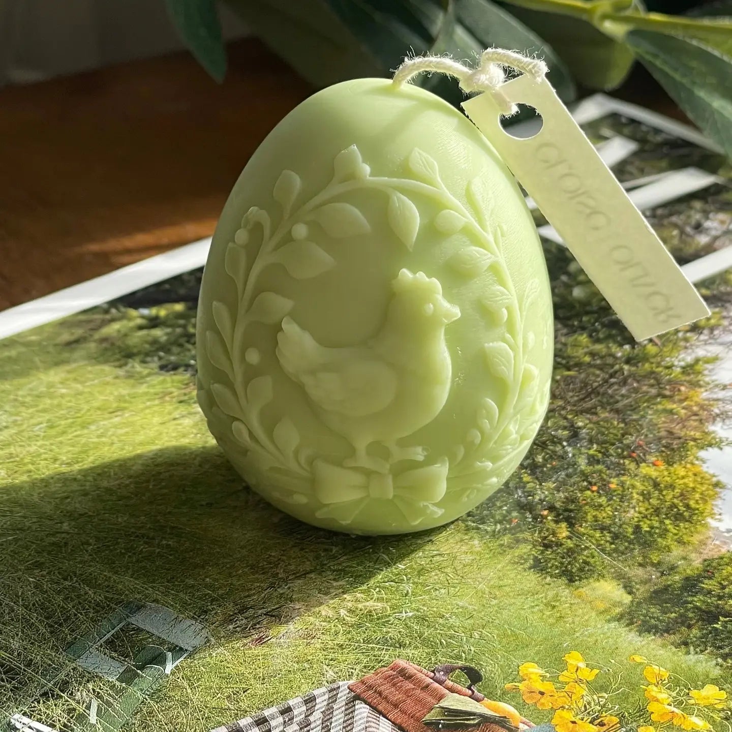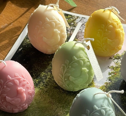 Hand-poured from natural soy wax, this spring themed egg candle features a delicately sculpted hen surrounded by leafy details. With its soft spring colour and charming farmhouse design, it’s perfect for seasonal décor, gifting, or adding a cozy touch to any space.