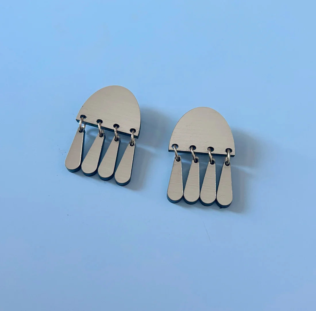 The Aida Earrings feature a bold, architectural shape paired with a row of articulated drops that move gently with you. Though more compact in size, they deliver the same sculptural impact and rhythmic elegance as their larger counterparts.