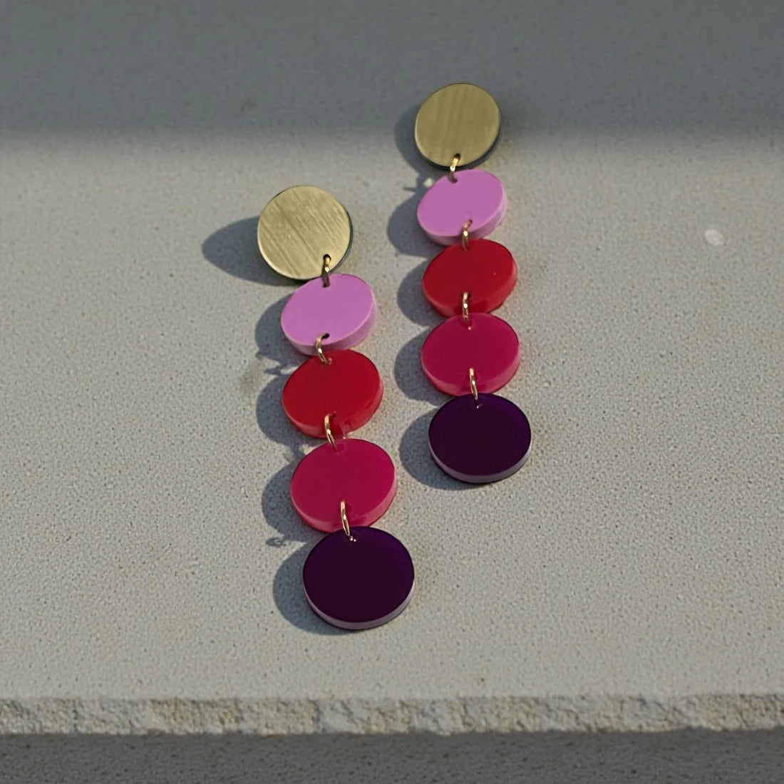 With their cascading column of perfectly stacked circles, these statement earrings bring movement, colour, and pure happiness to your look. At a whopping 10 cm long, they’re made to be seen — yet they remain beautifully lightweight and comfortable to wear.