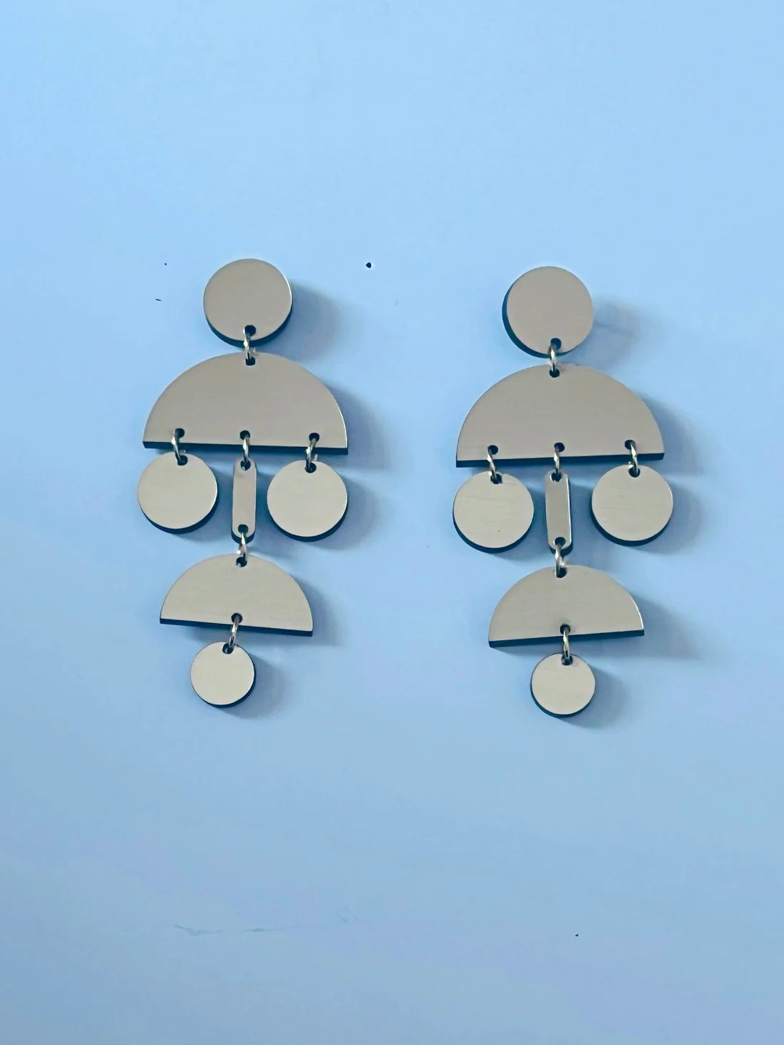 Featuring layered arches and cascading circular elements, the Soraya Earrings create a striking silhouette that feels both celestial and sculptural. Each piece moves independently, creating beautiful motion and gentle sound with every step — like a wearable constellation in motion.