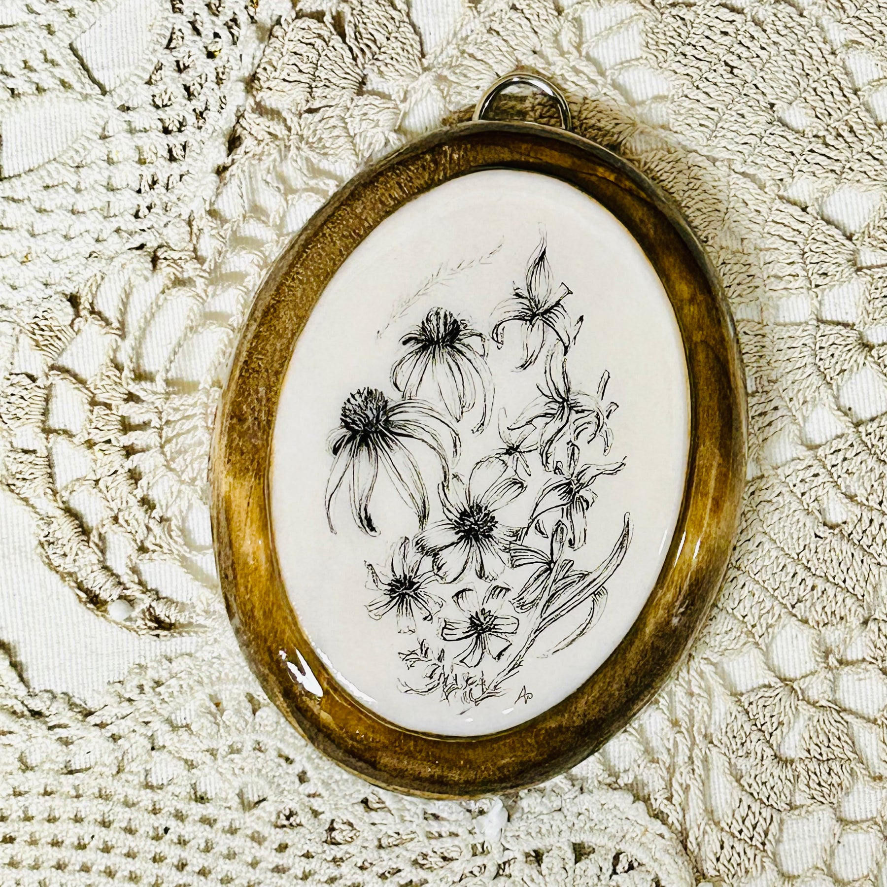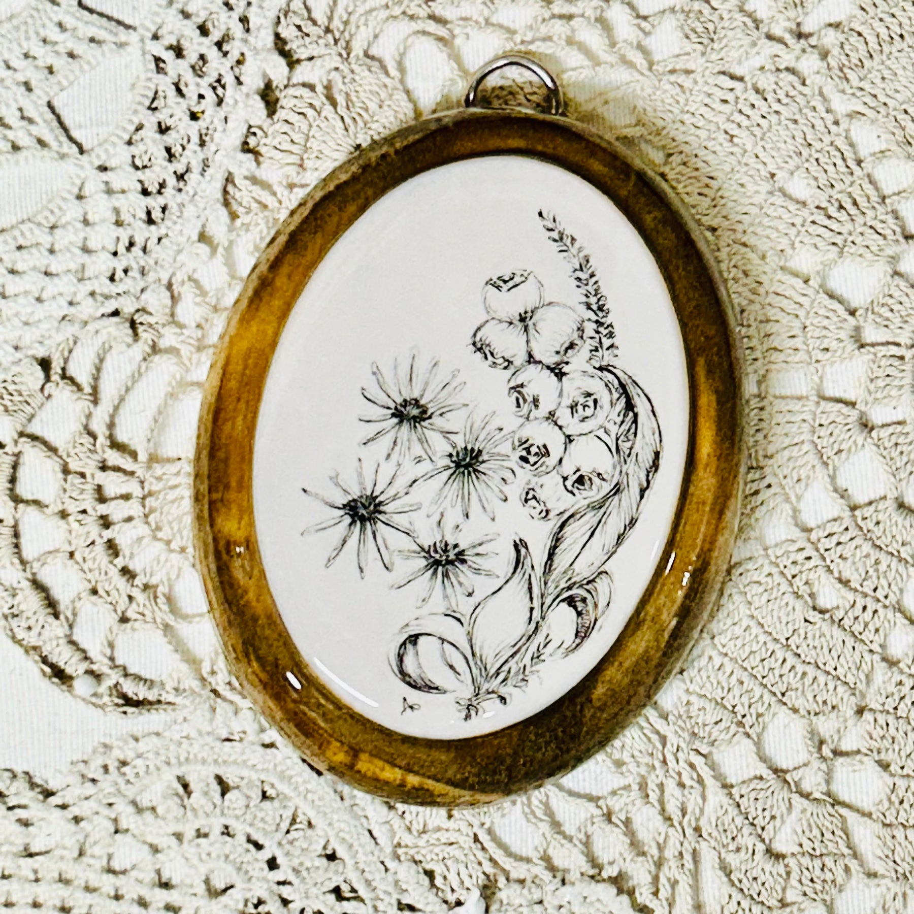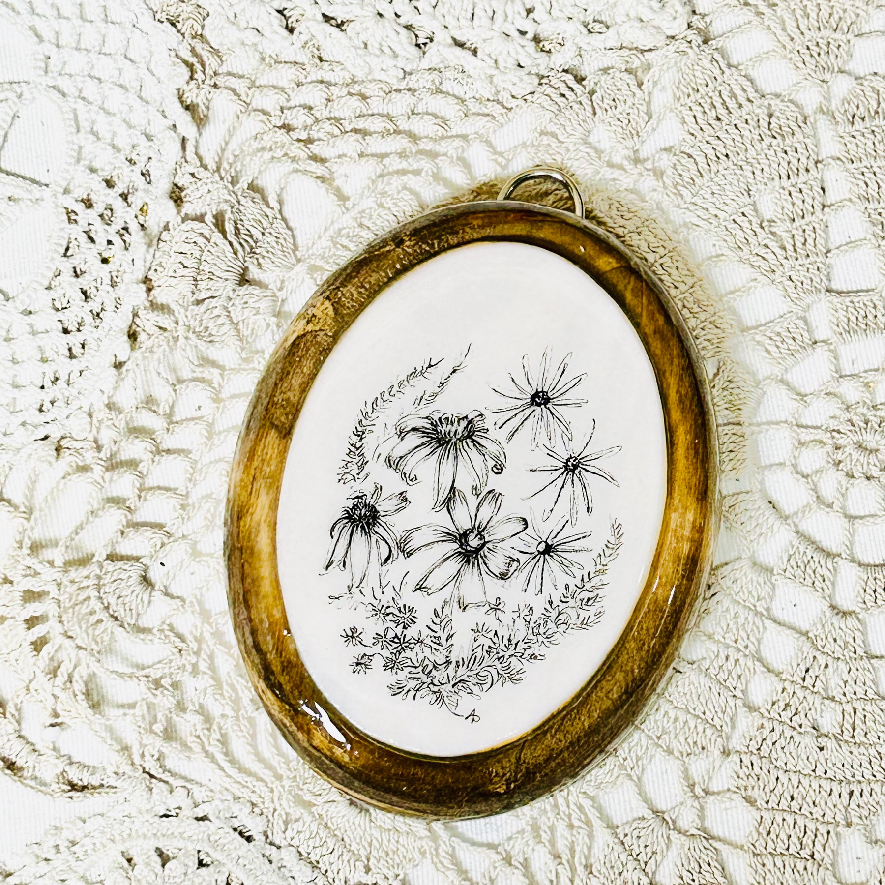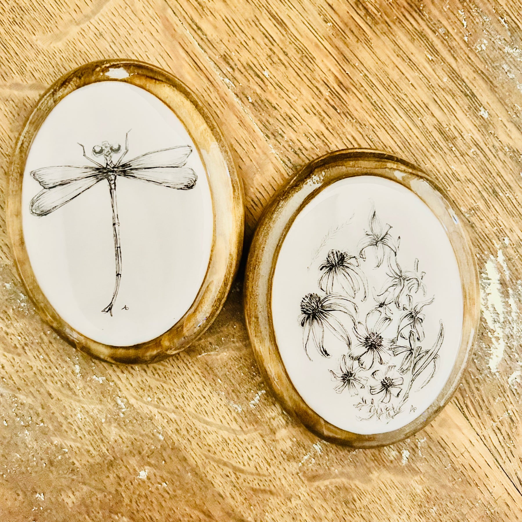 Each piece is hand-drawn, mounted on wood panels, and resin-covered.