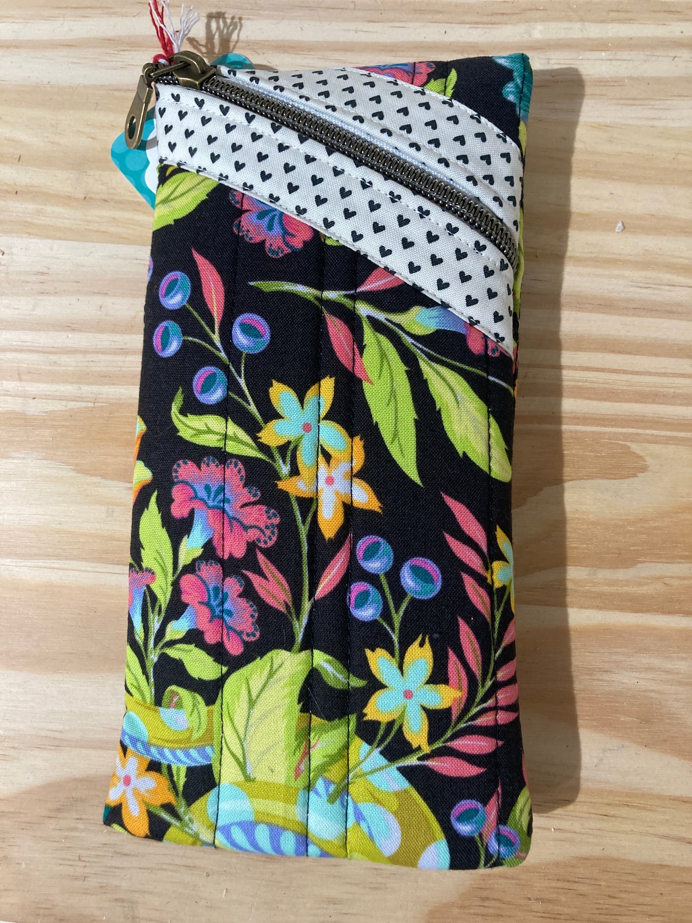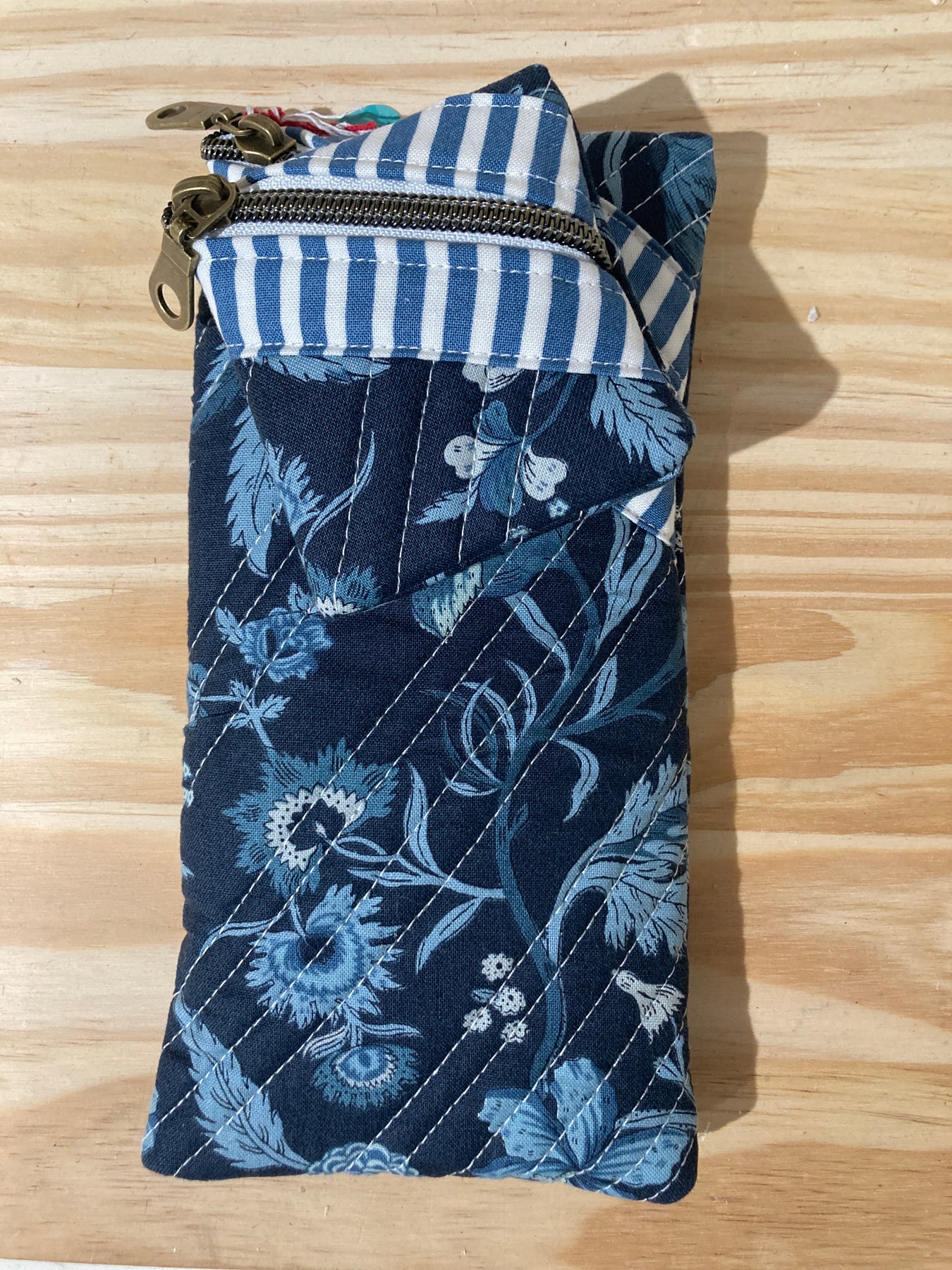 Quilted zippered case for Eyeglasses, makeup brushes or pencils with small matching zippered case.