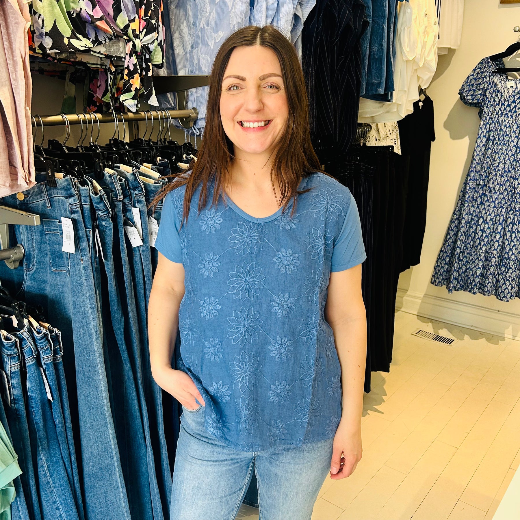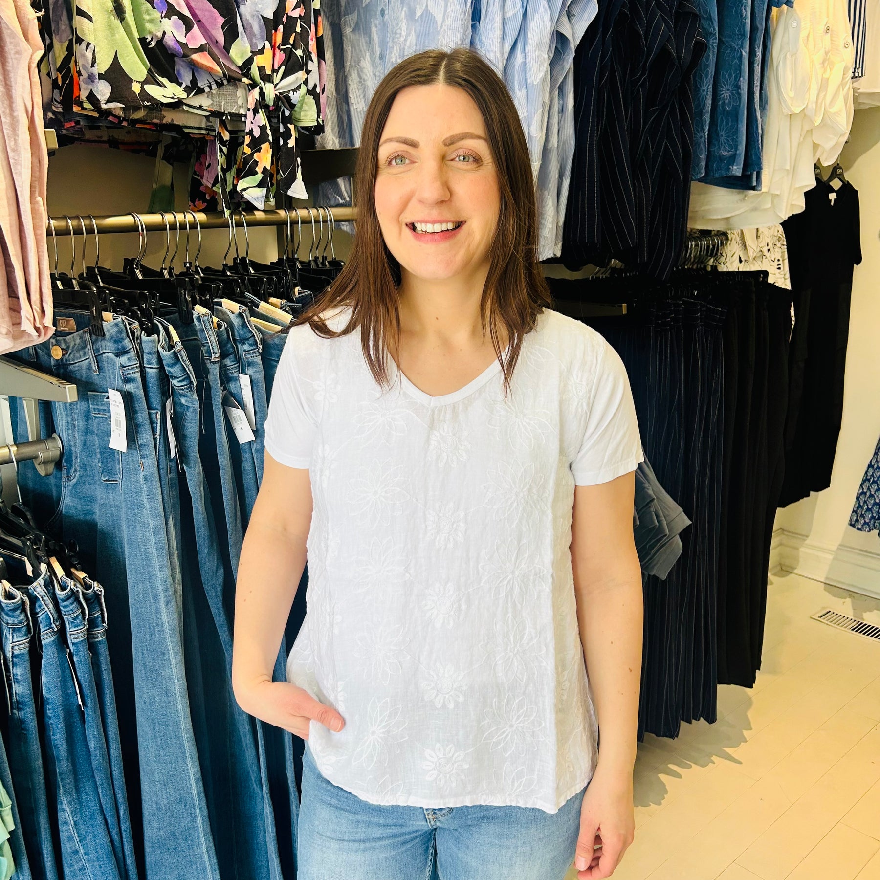 Embossed V-Neck Tops