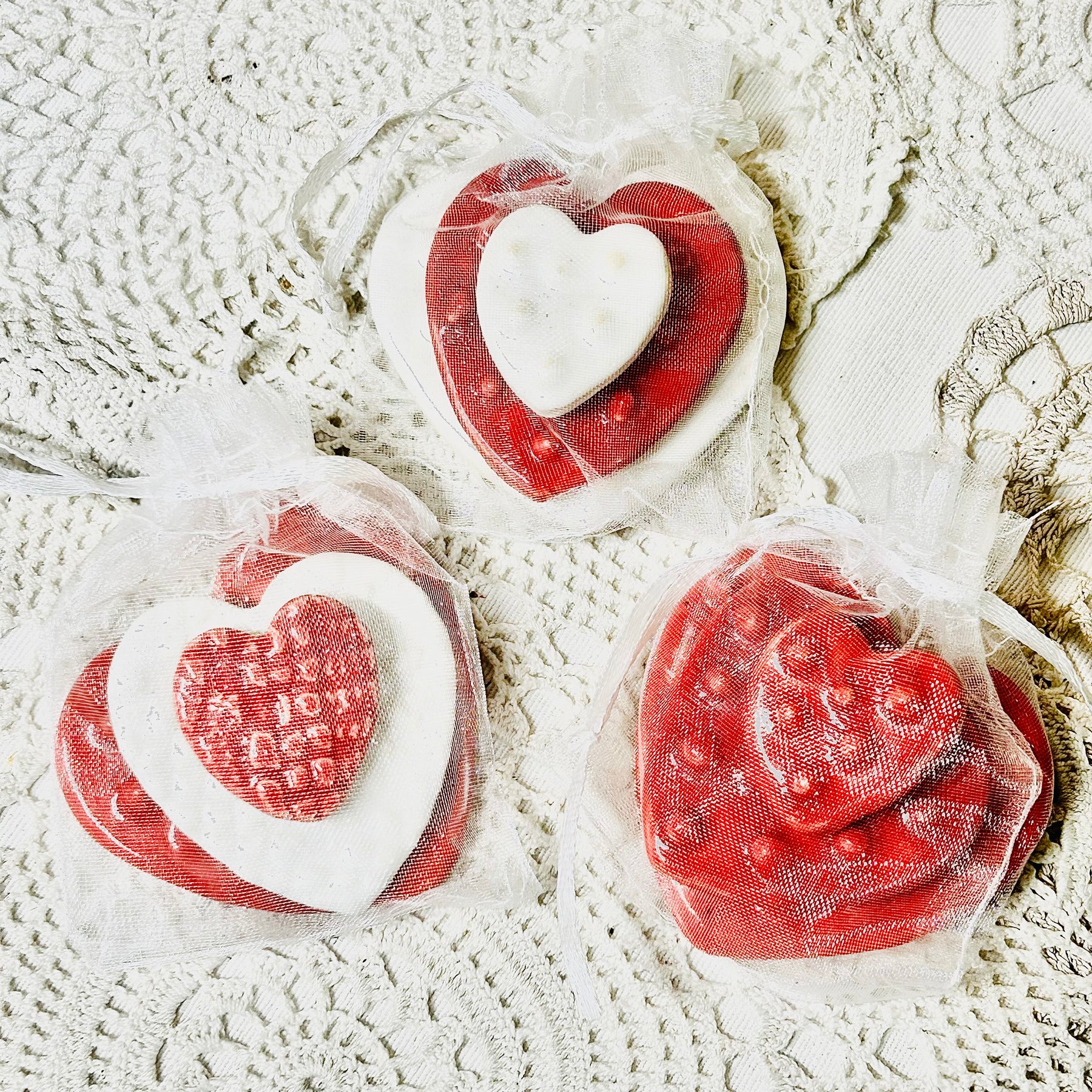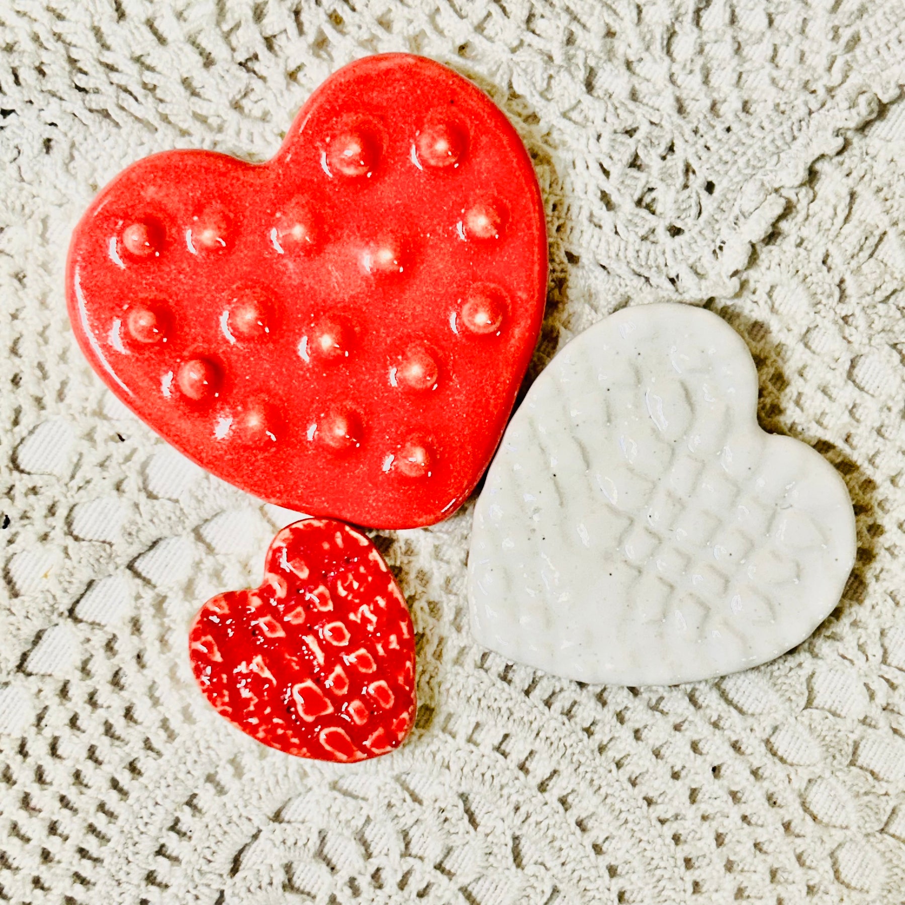 Set of 3 handmade pottery hearts. Various textures and colour combinations.