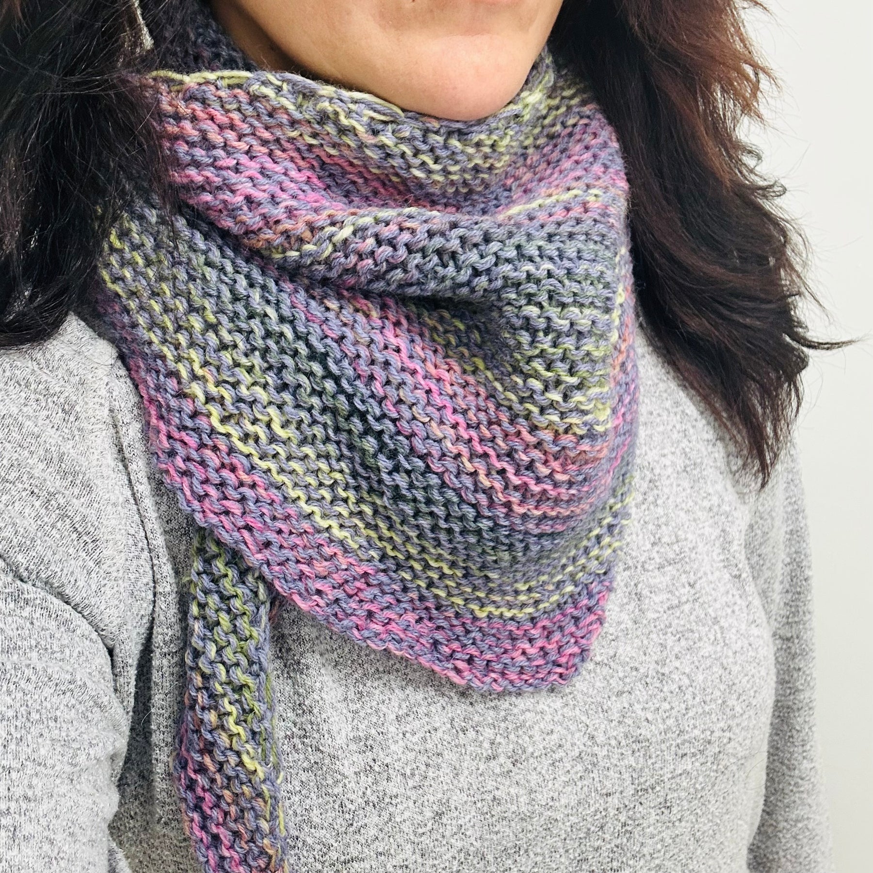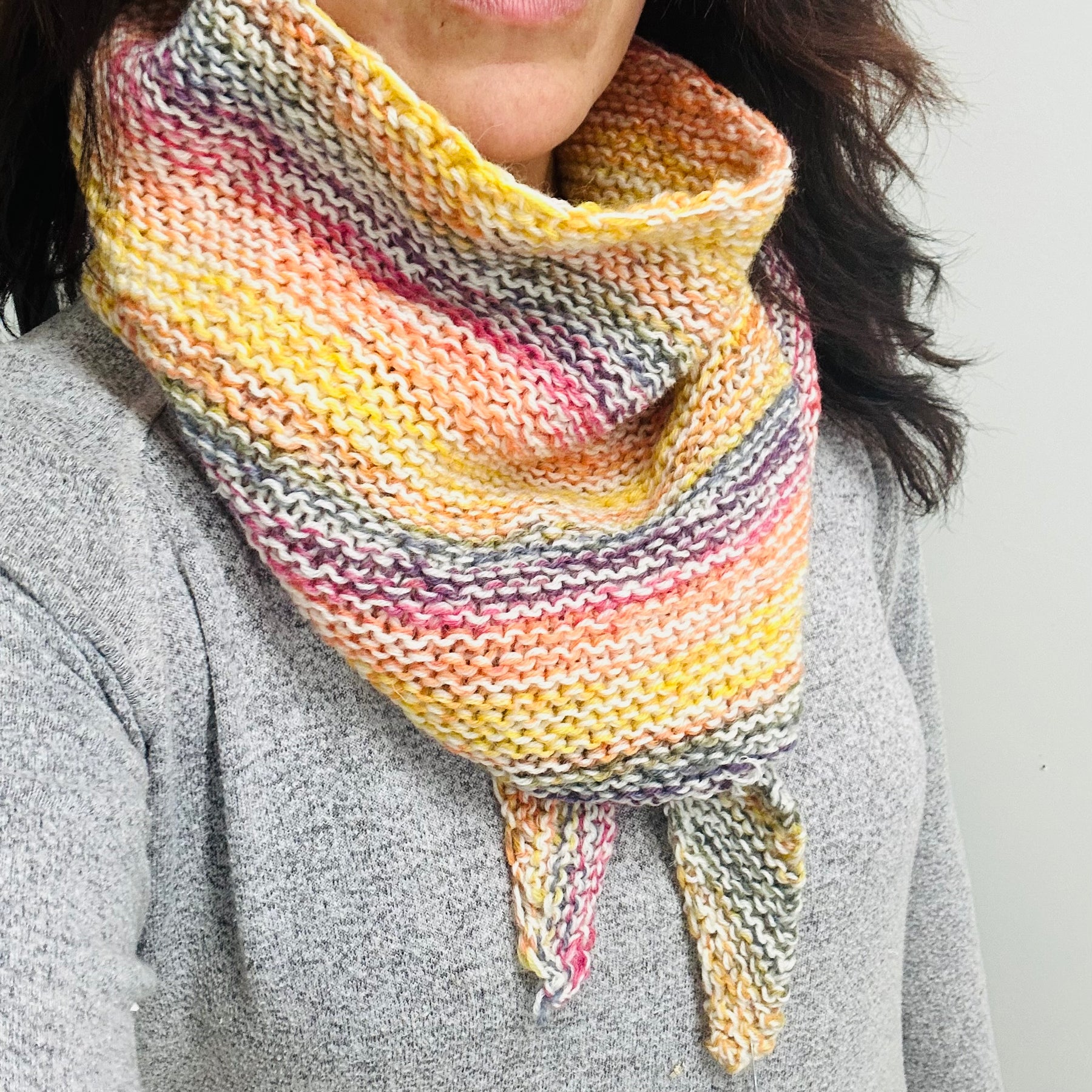 Wraps are one of a kind hand-knit garments made with wool blend yarns.