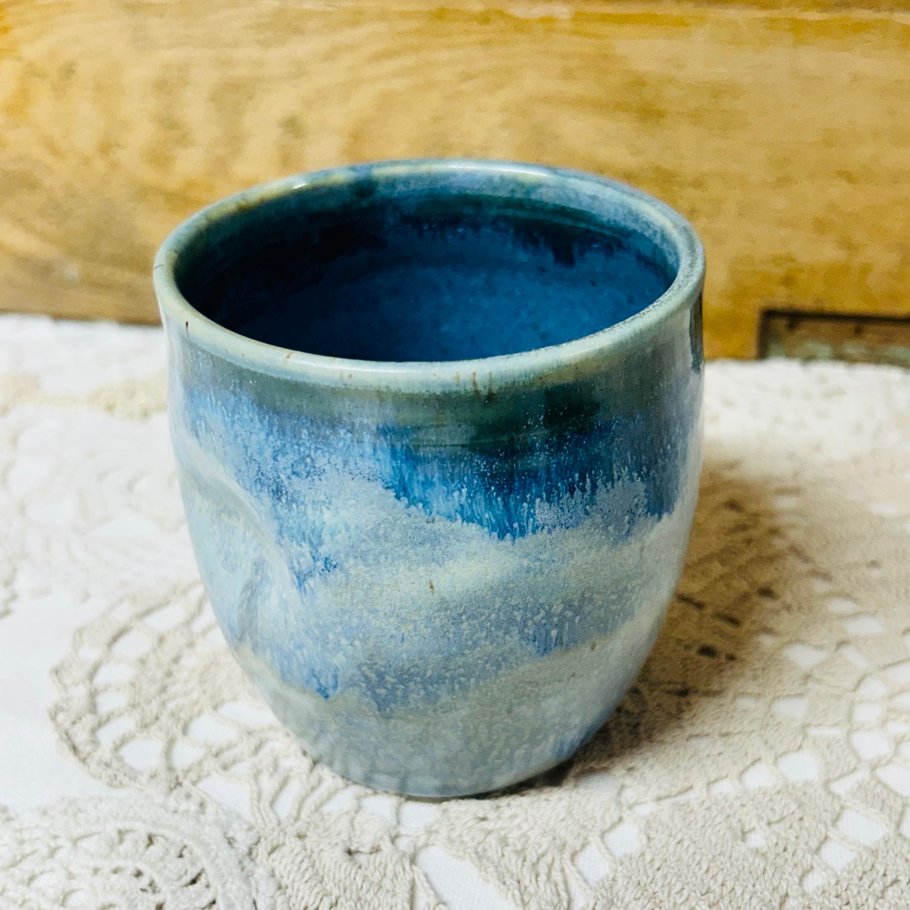 Your favourite Northwinds pottery mug now without a handle and an added thumb dimple. Perfect for all your non hot beverages.